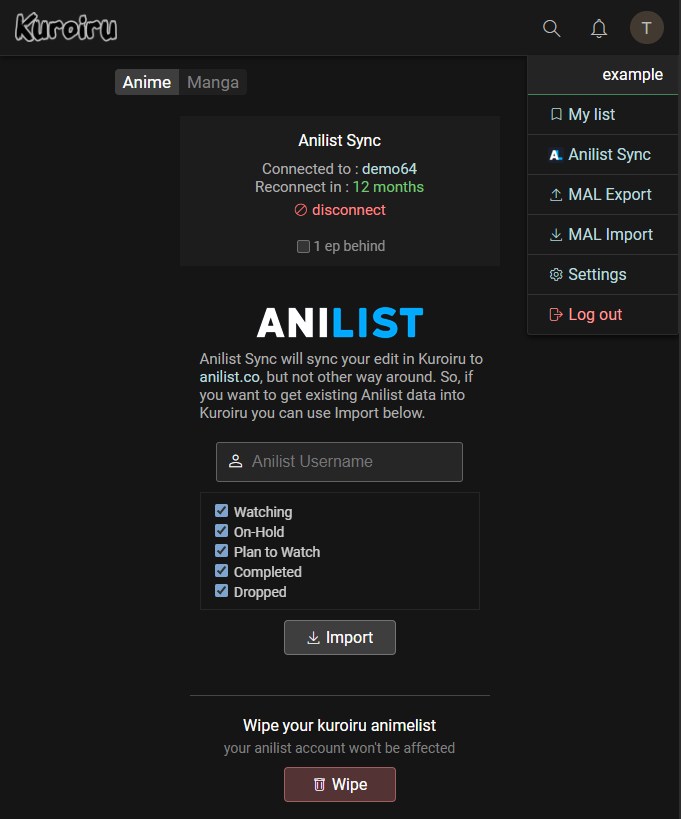 Integrated with MAL & Anilist, you can use your existing animelist merged in Kuroiru
